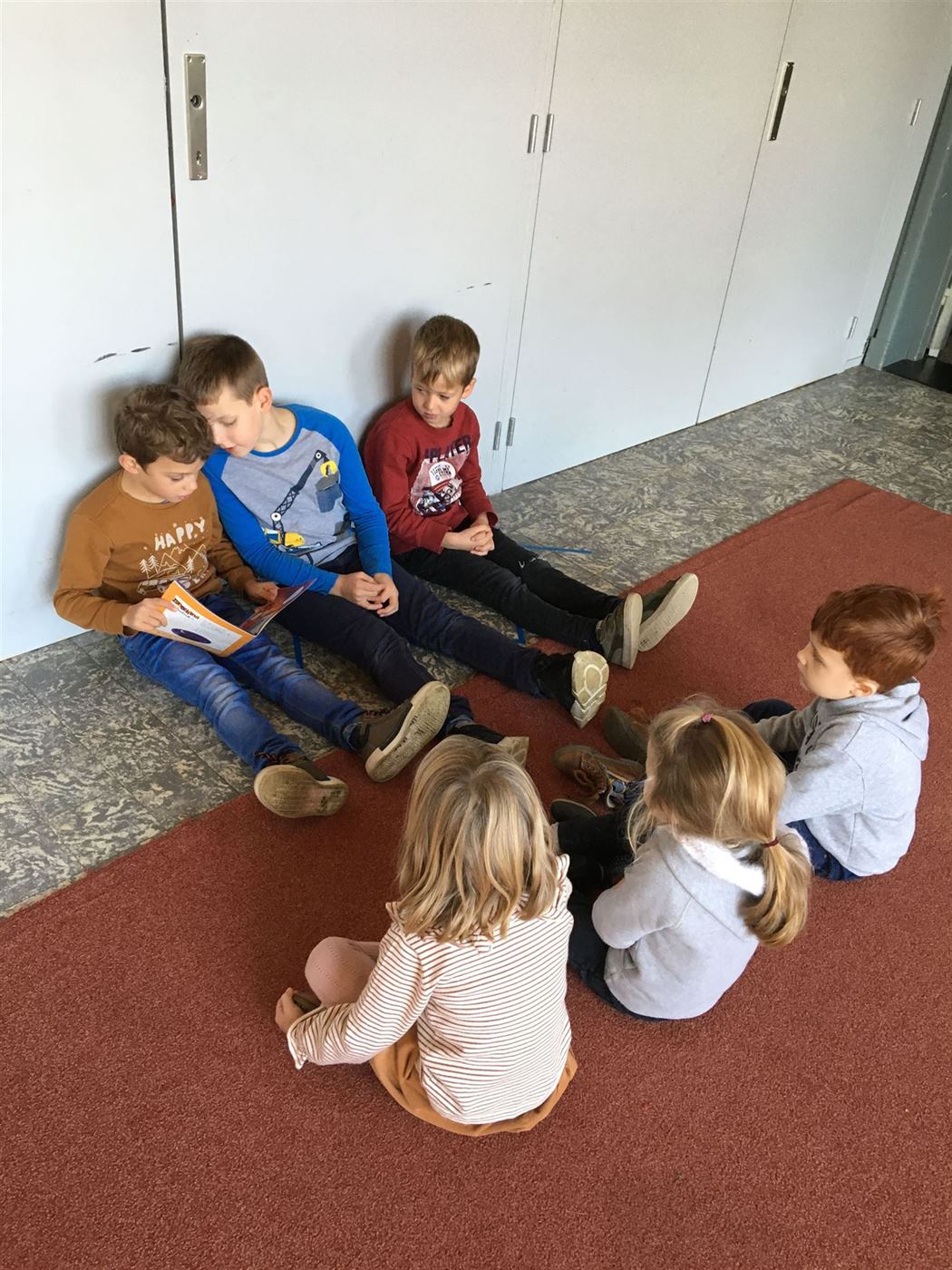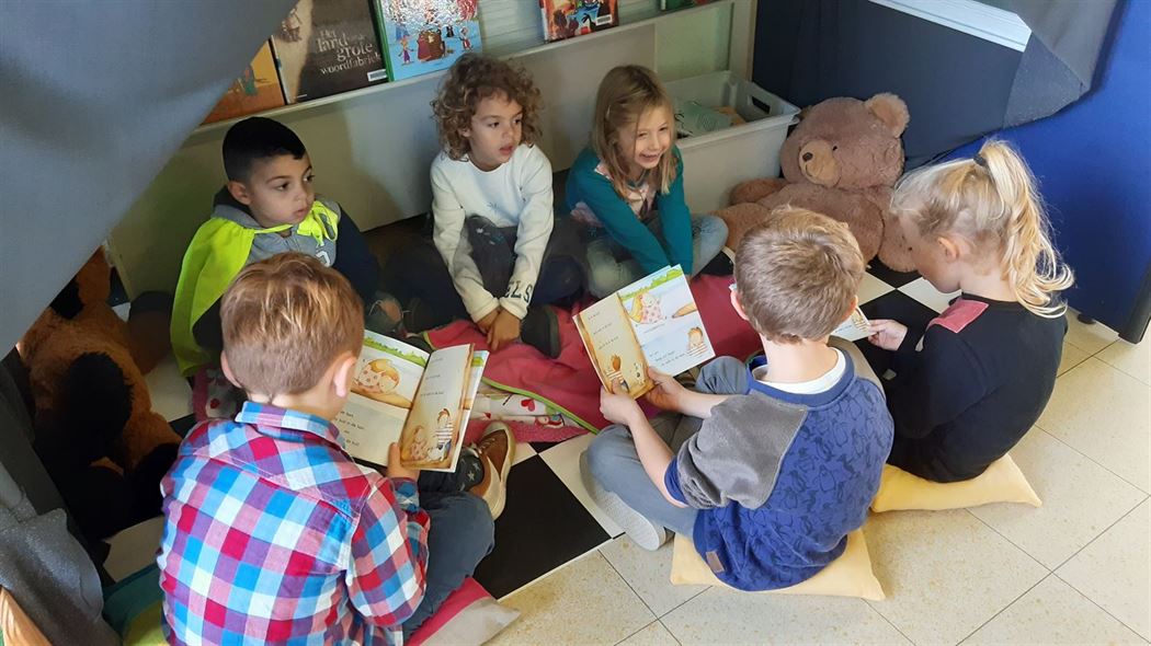 De leerlingen van het eerste leerjaar hebben pas leren lezen. Ze kwamen al voorlezen aan onze oudste kleuters.