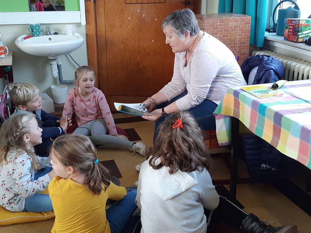 Leerlingen Hasperhoven lezen voor aan de kleuters.