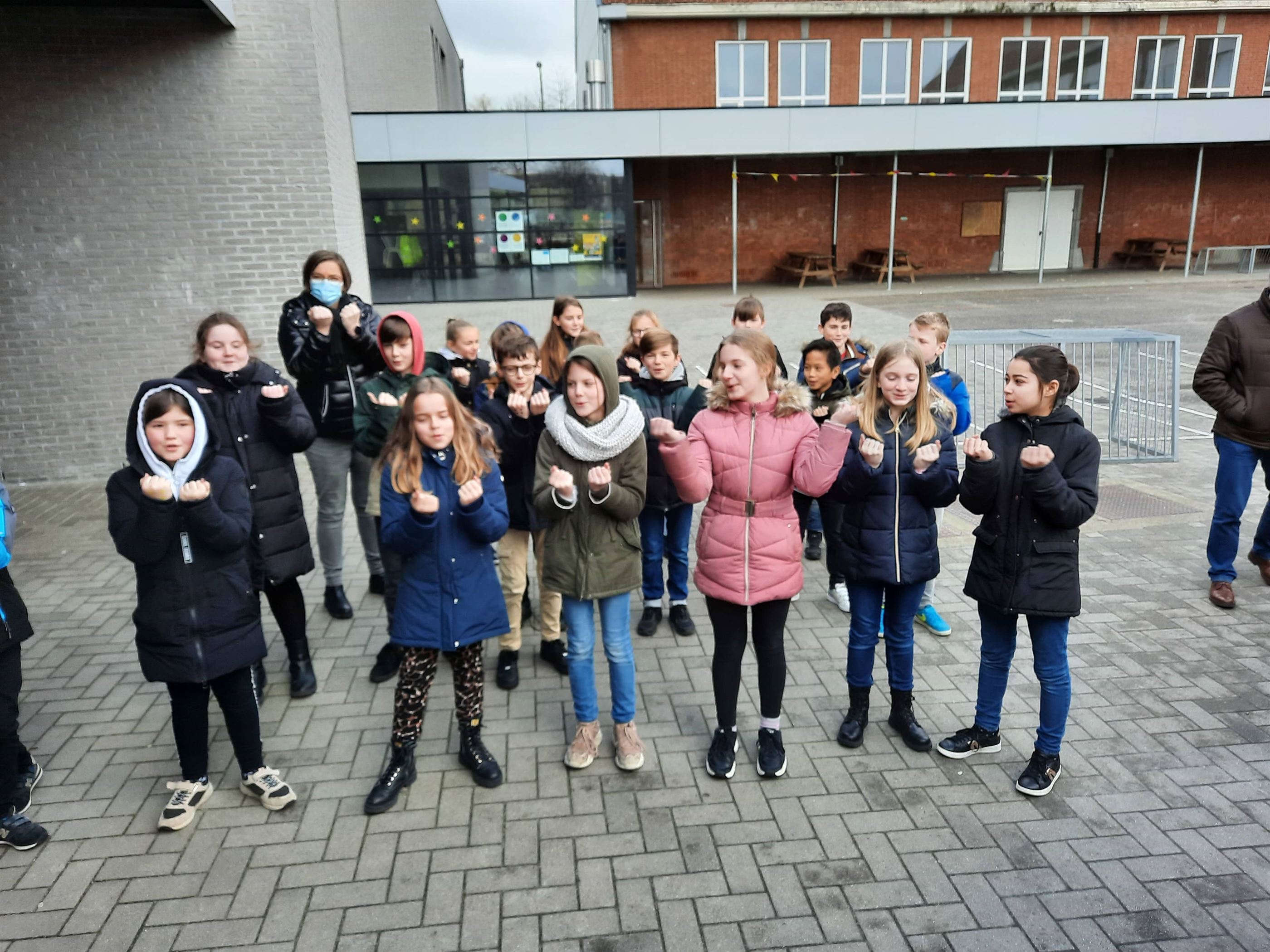 Onze leerlingen van de lagere school sloten deze week de "Vlaamse week tegen pesten" af met de hun "move en kreet" die ze per klas bedachten.