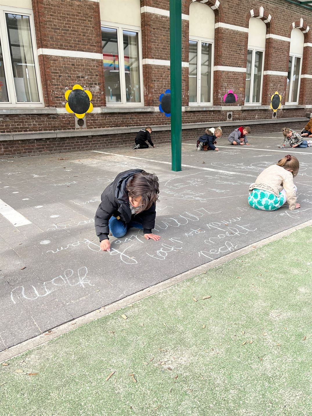 Onze leerlingen van het 1ste leerjaar hadden woensdag een buitenlesdag. De leerlingen schreven op de speelplaats de aangeleerde woordjes en rekenden in de pastorijtuin. En nog zoveel meer. Wat een leuke voormiddag.