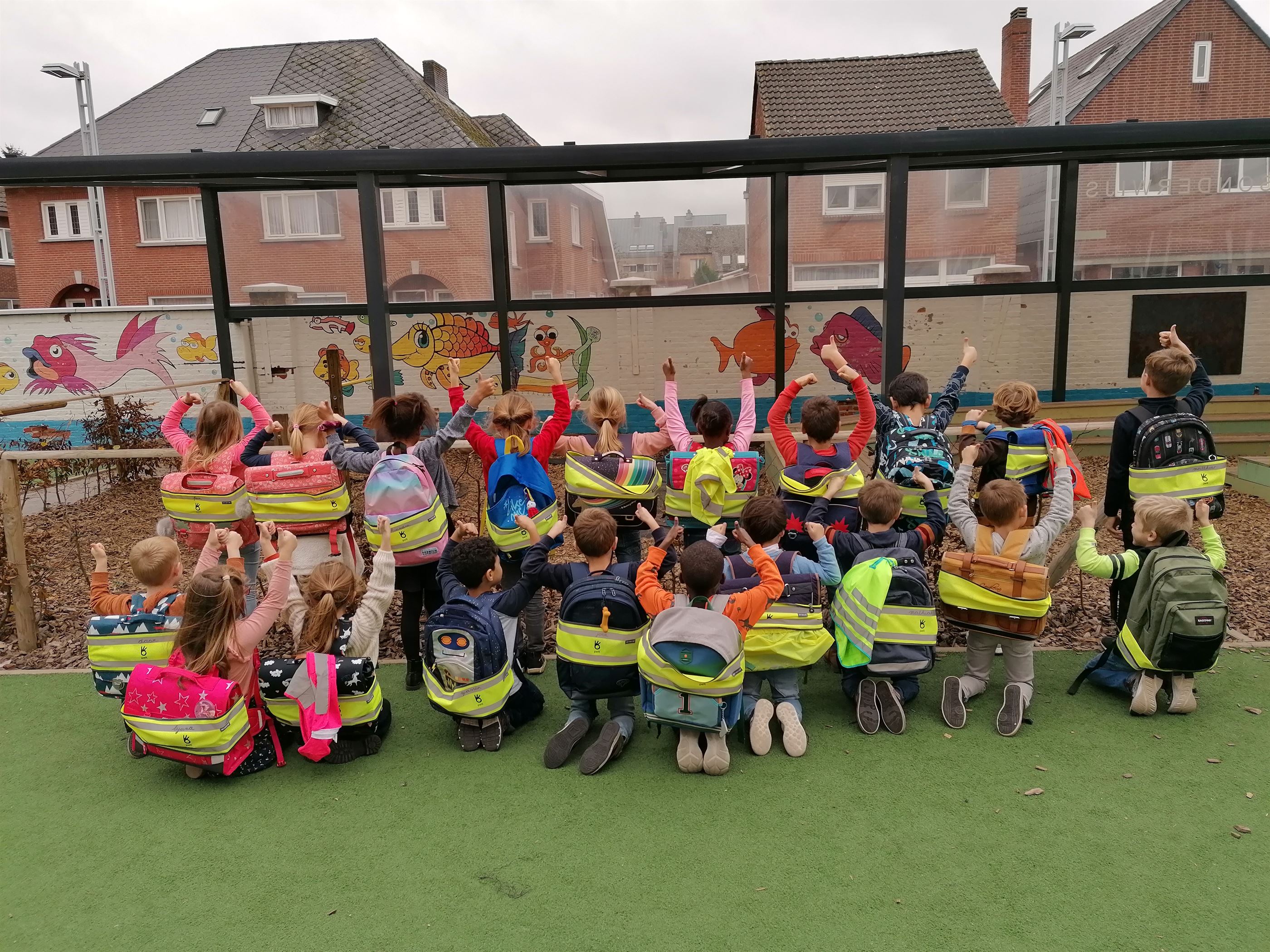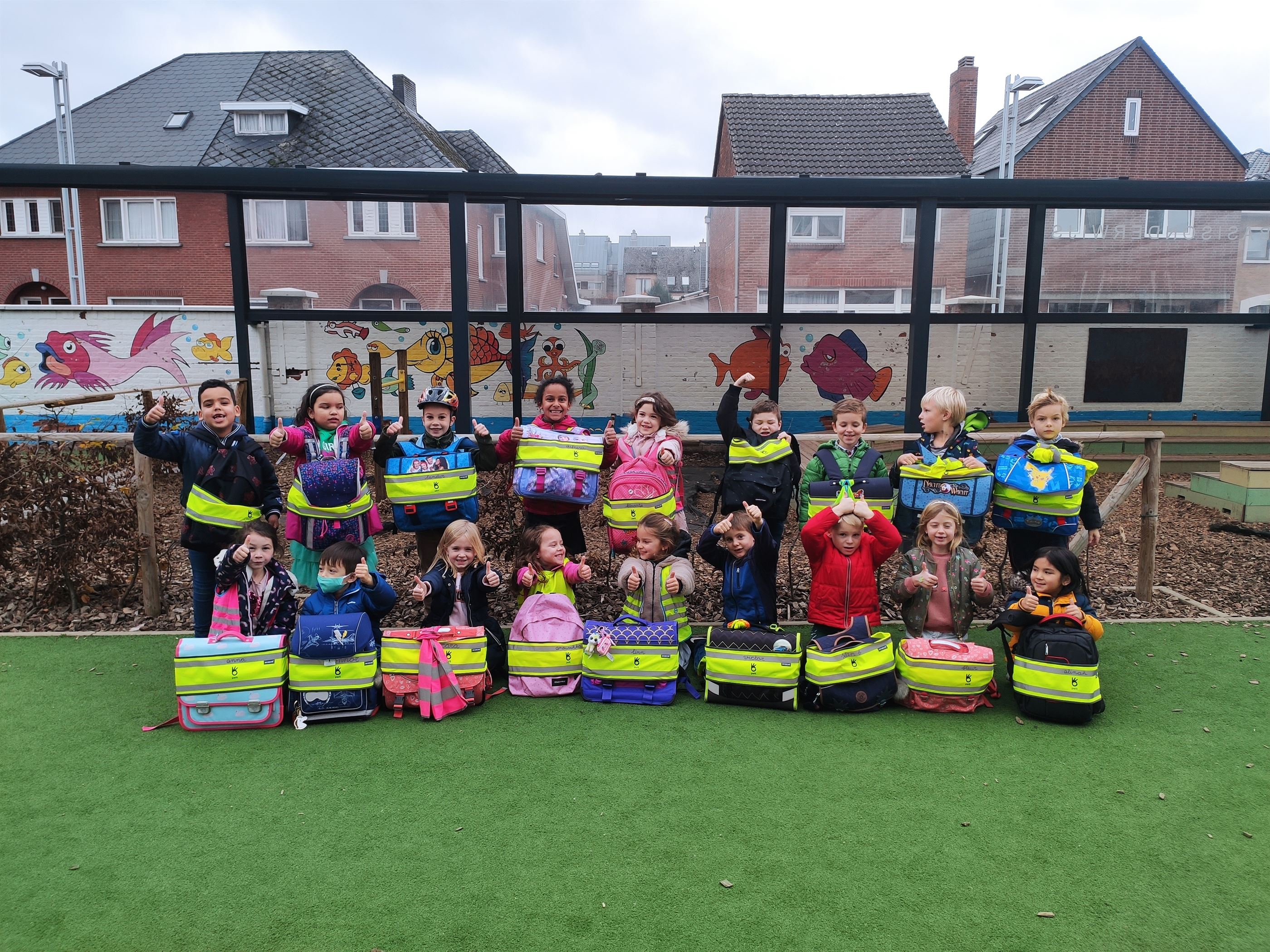 De gemeente Pelt biedt sinds vorig schooljaar onze leerlingen van het 1ste leerjaar een gratis fluoband aan. Dit maakt onze leerlingen extra zichtbaar in het verkeer.