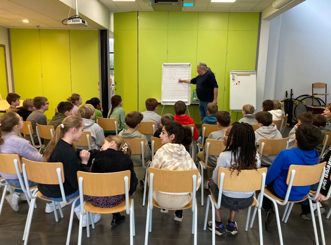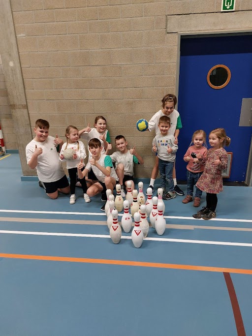 De juffen maakten er een leuk feest van met iedereen van het eerste leerjaar. De leerlingen mochten in groepjes van vier allerlei opdrachten uitvoeren.